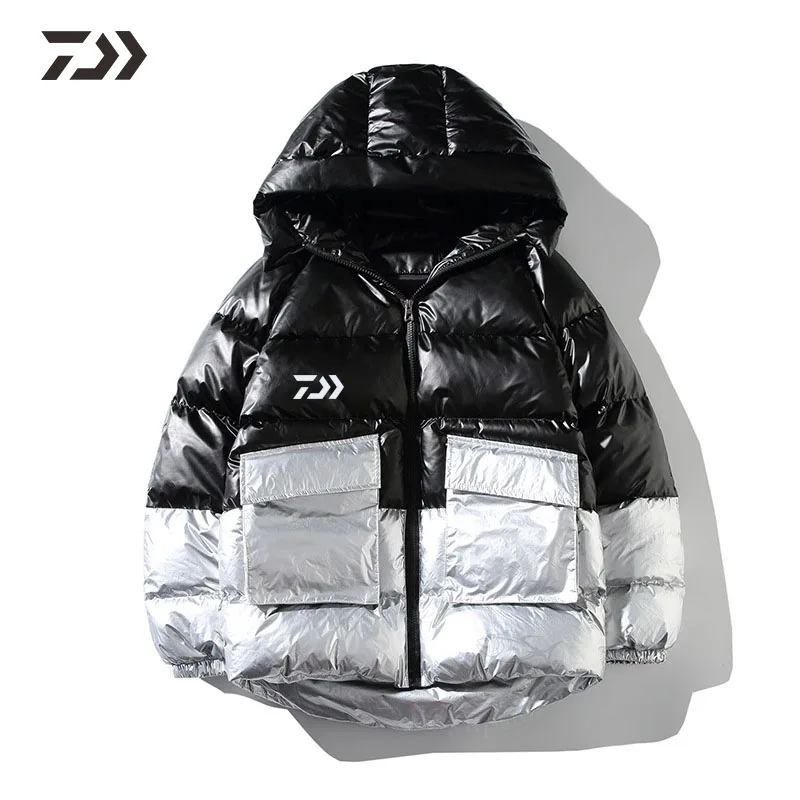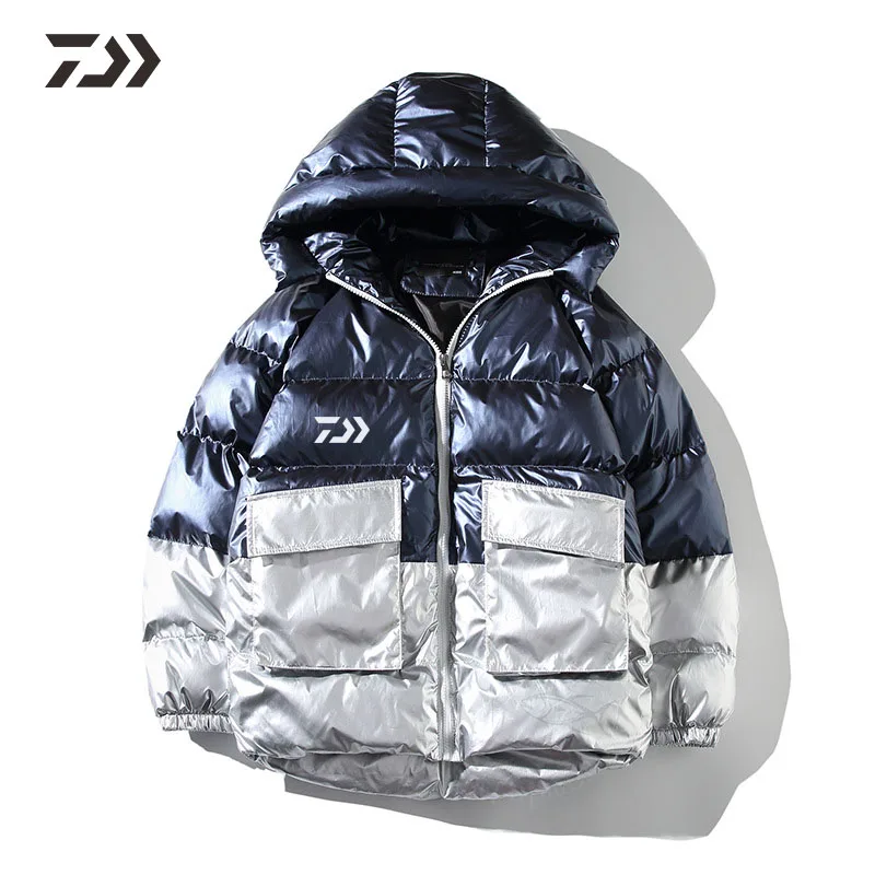 Cheap Daiwa Patchwork Bright Fishing Clothing Winter Thick Thermal Fishing Jacket Men Outdoor Hiking Hood